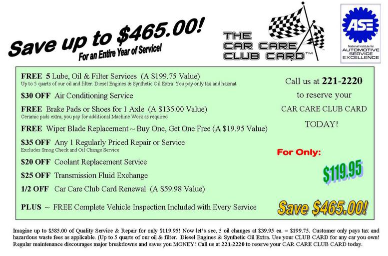 The Car Care Club Card